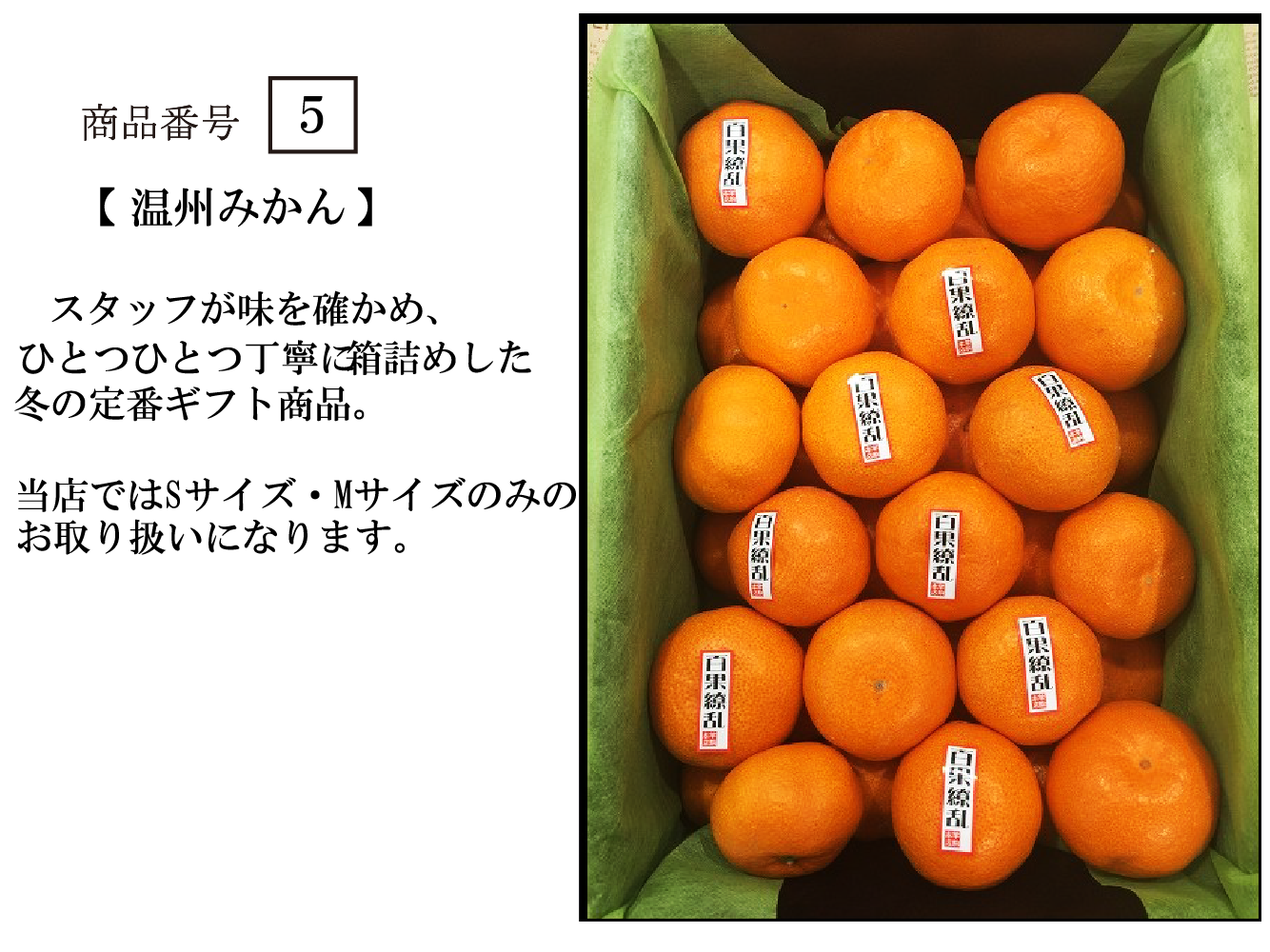 種類、個数(大箱/24又は30粒・小箱/12又は15粒)はその時の一番状態の良いものを当店で選んでお送り致します。 ※入荷状況により発送までお時間をいただく場合がございます。 ※日にちの指定はお受け出来ませんが、時間帯はご注文後の確認のお電話にて承ることは出来ます。 ※クール便での発送商品です。 | ||||||||